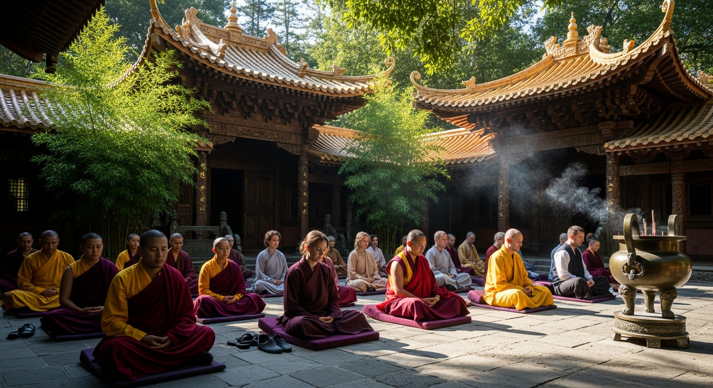 宣化は、ダルマ・レルム仏教協会を設立し、アメリカ・カリフォルニア州に「万仏城(シティ・オブ・テン・サウザンド・ブッダズ)」を築きました。そこは、修行や学びの場として多くの人々が集う場所となりました。さらに、西洋に本格的な出家制度をもたらし、禅(チャン)仏教の教えを深く根付かせたことでも知られています。また、ダルマ・レルム仏教大学を設立し、学問としての仏教の発展にも力を尽くしました。